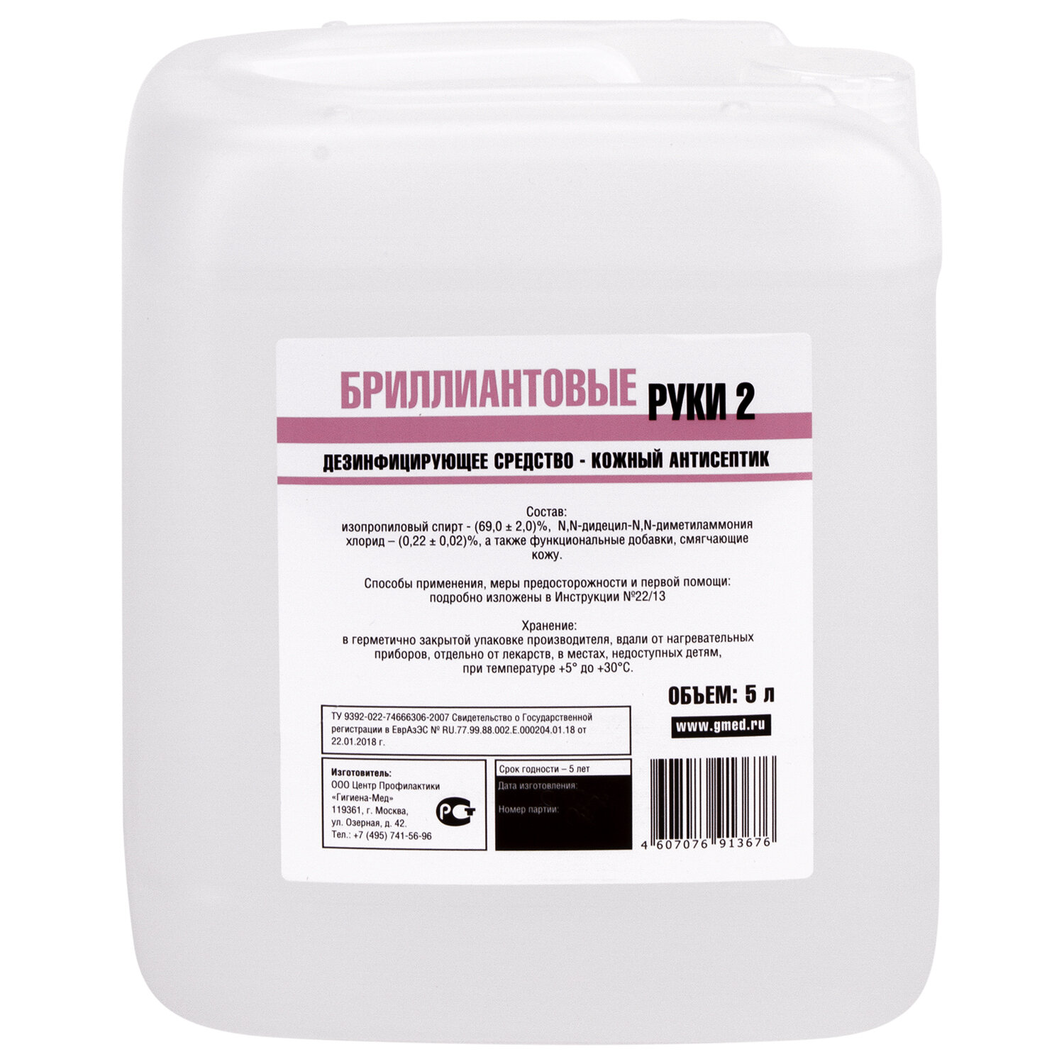 Форма выпуска: жидкость Режимы дезинфекции: дезинфекция кожных покровов, дезинфекция поверхностей Область применения: ветеринарные и животноводческие объекты, детские учреждения (детсады, школы и т.п.), коммунальные объекты (бани, бассейны, гостиницы, общественные туалеты и т.п.), курортные, спортивные и культурно-оздоровительные комплексы, лаборатории, ЛПУ, парикмахерские, косметические салоны и т.п., предприятия общественного питания, предприятия перерабатывающей промышленности, учреждения соцобеспечения Объем: 5 л Тип активности: бактерии, вирусы, патогенные грибы Содержит: спирт, ЧАС Соответствует требованиям ГОСТа: ГОСТ 12.1.007-76 п.1.2, 1.3, ГОСТ Р 56990-2016, ГОСТ Р 58151.1-2018 Подходит для использования в детских учреждениях: да Пролонгированный антимикробный эффект: да Наличие СГР на дез. средство (кожный антисептик): да Дозатор: отсутствует Упаковка: канистра