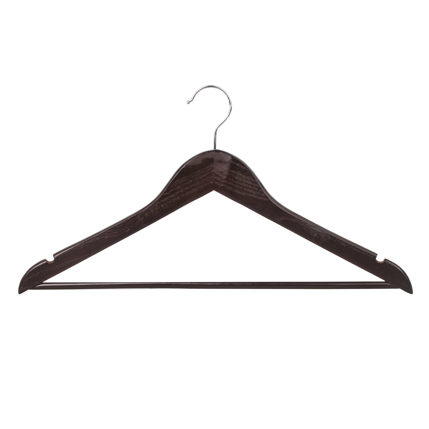Материал каркаса: дерево Серия: Стандарт Размер модели: 48-50 Ширина: 45 см С перекладиной: да Крепление для брюк и юбок: выемки Особенности: невыкручивающийся крючок Покрытие: лакированное Количество в комплекте: 5 шт Цвет каркаса: темно-коричневый